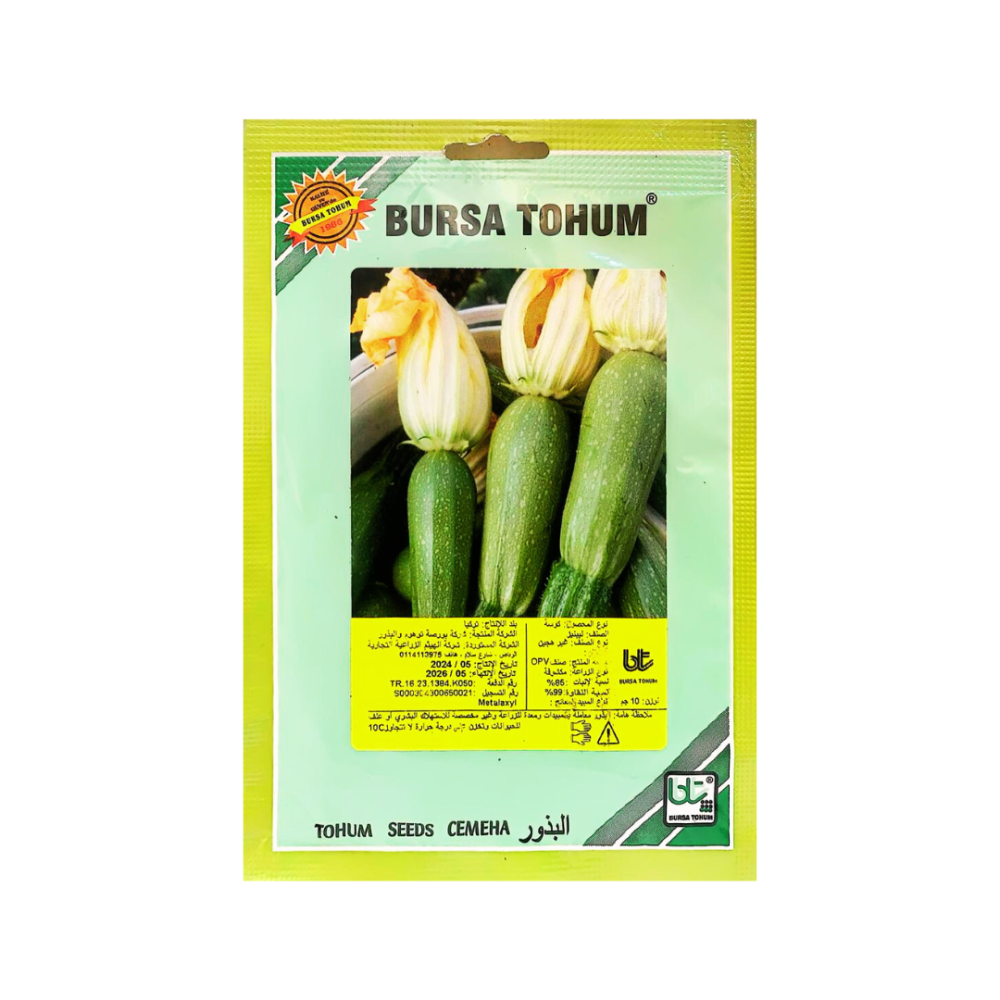 Zucchini seeds are of high quality, suitable for cultivation in cottages or agricultural fields. It gives fruits of a cylindrical shape and light green color, with beautiful yellow flowers that are sometimes used in cooking. Zucchini is a vegetable rich in water and fiber, easy to plant and grow.