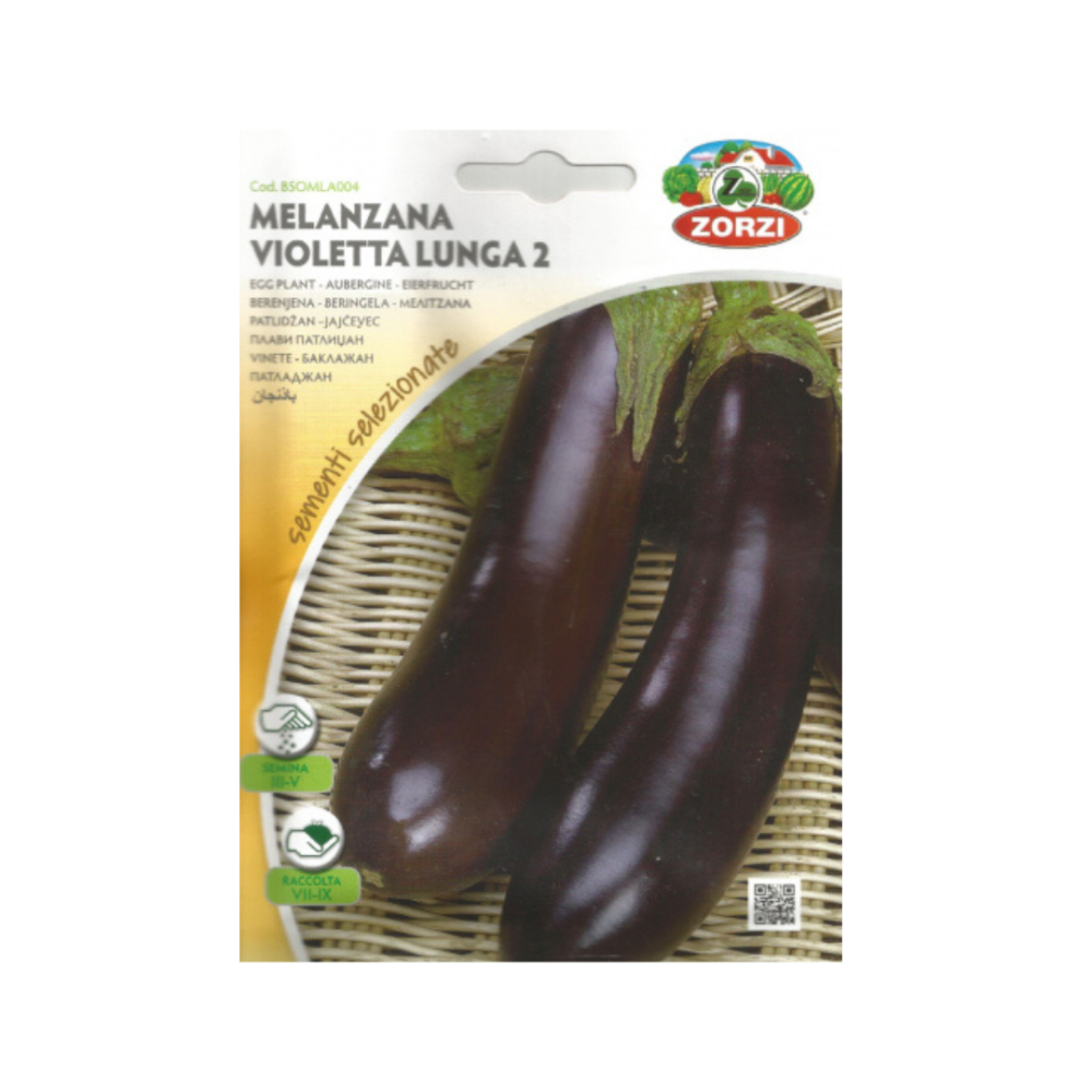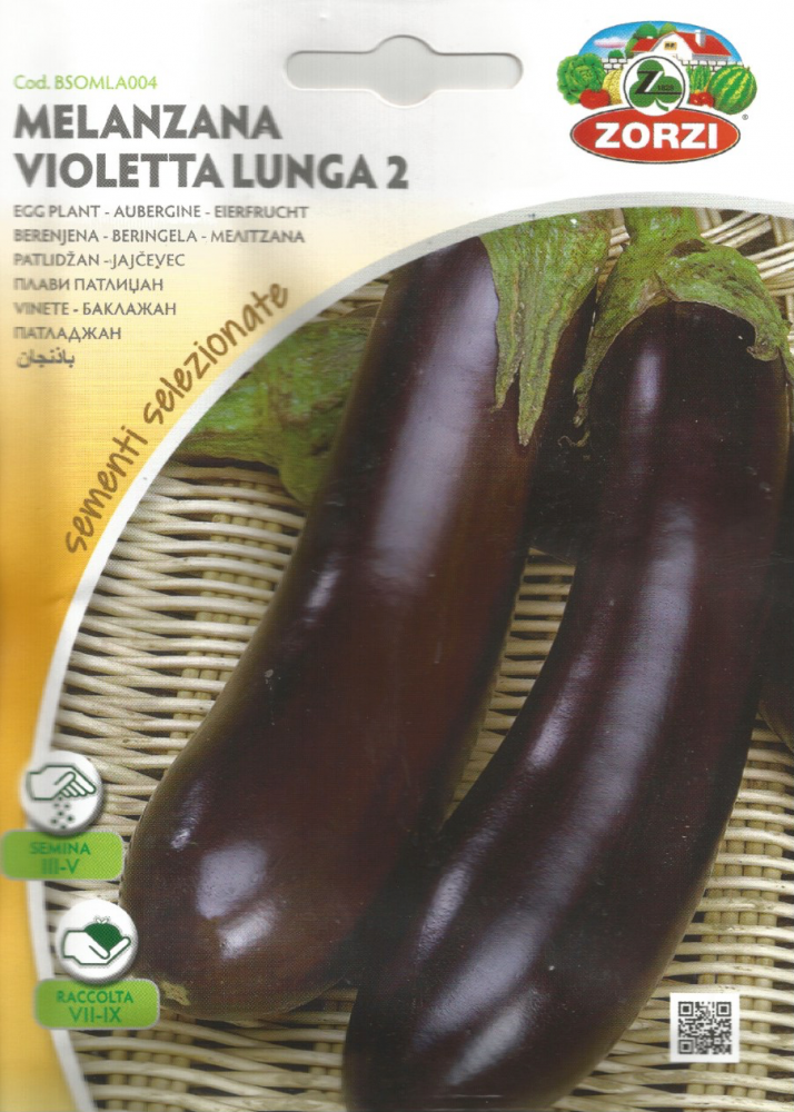 باذنجان بنفسجي طويل قشرة ناعمة وذات اللون البنفسجي اللامع ، لبه به بذور قليلة .